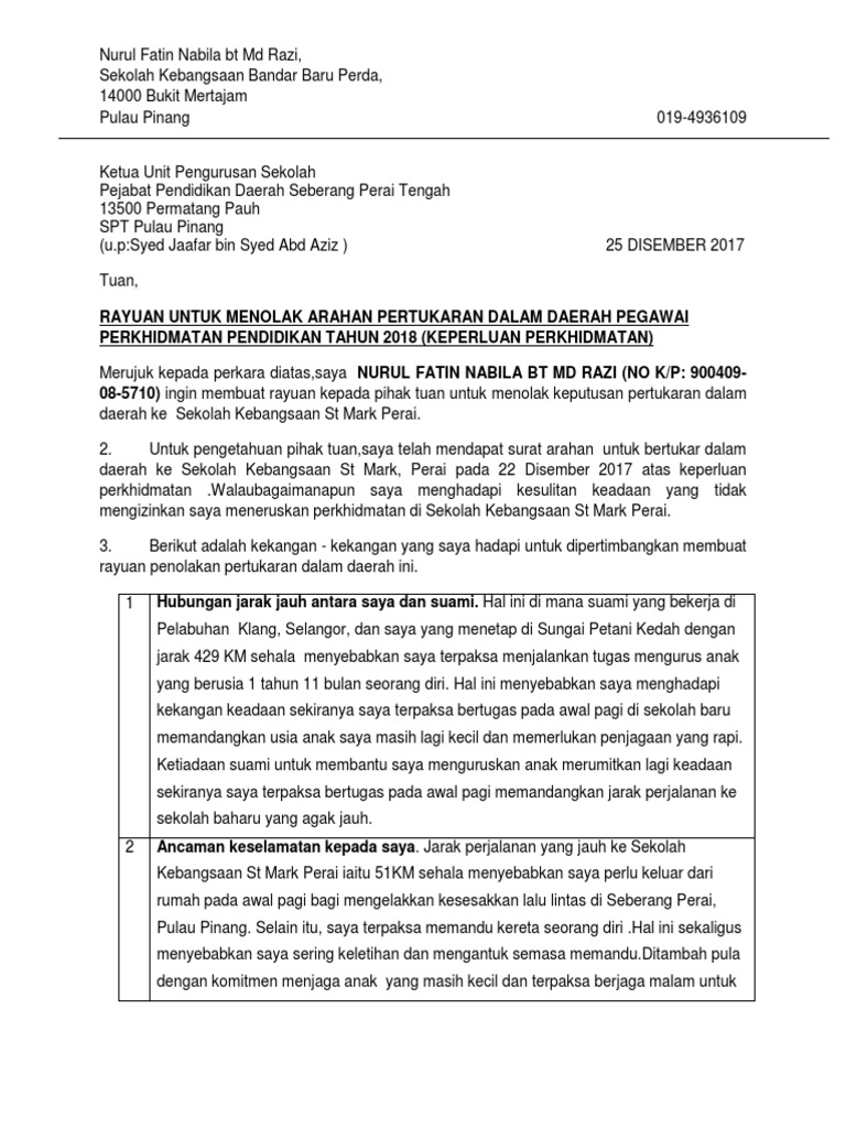 Surat Rayuan Tolak Pertukaran Pdf